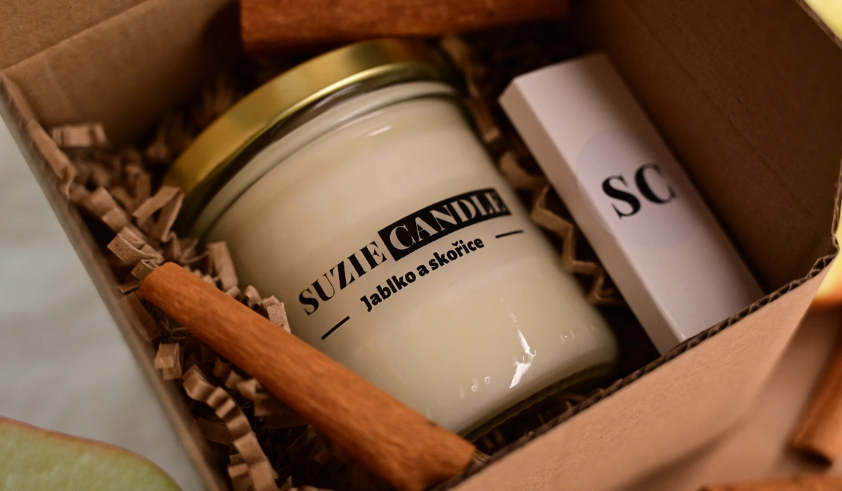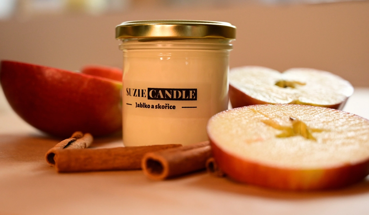 Je vyrobená ze 100% přírodního sójového vosku a obohacená vůní jablka a skořice,