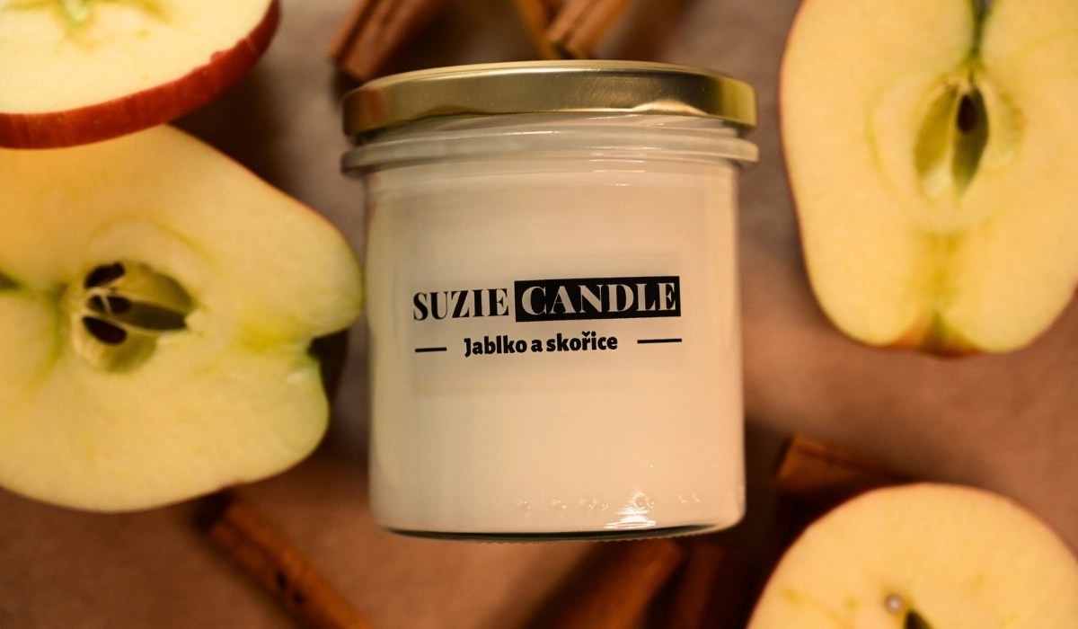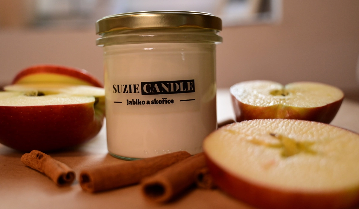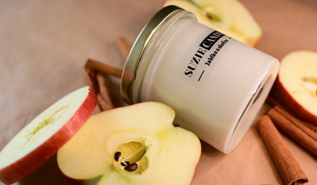 Je vyrobená ze 100% přírodního sójového vosku a obohacená vůní jablka a skořice,